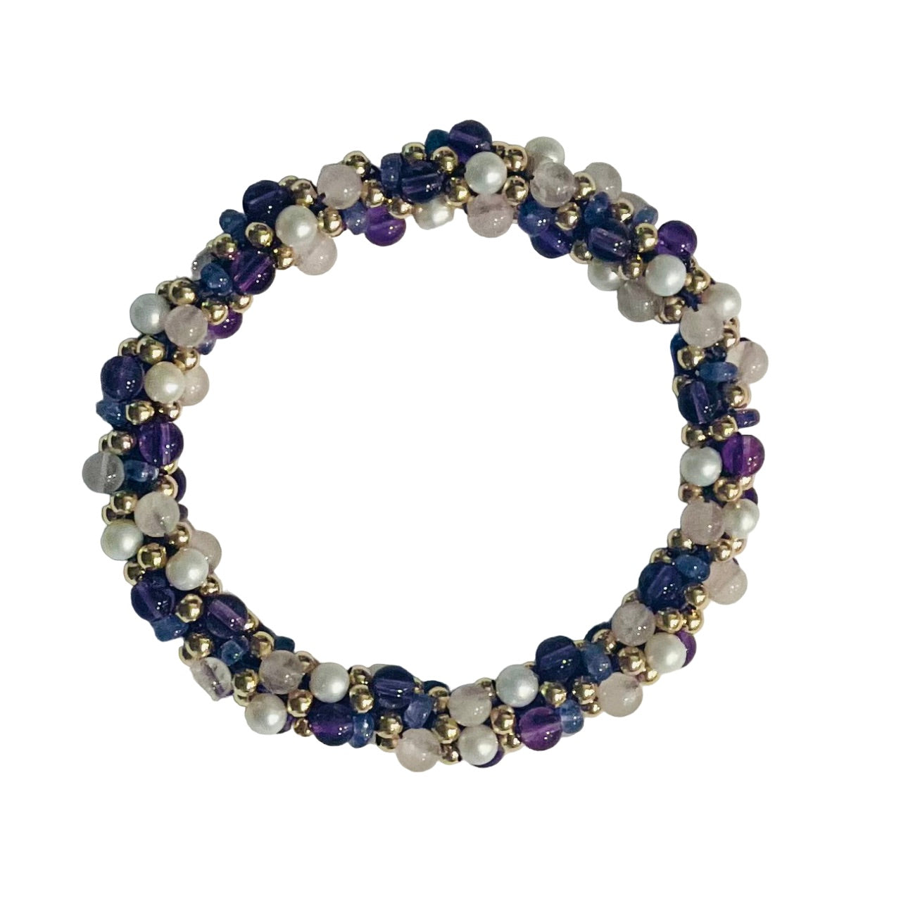 Made with 14kt Yellow Gold Filled, Amethyst, Tanzanite, Rose Quartz & Fresh Water Pearls.
